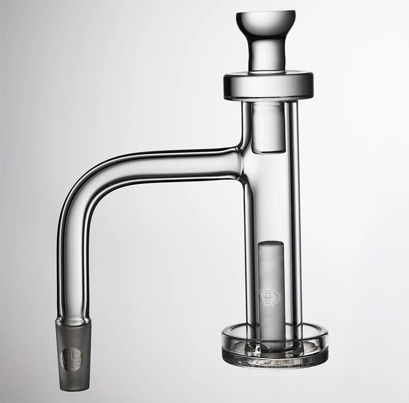 Updated from the original. This version of our widely popular Control Tower features heavier set walls, thicker and larger diameter neck tubing, and a new engraving on the bottom. The Control Tower BLK now comes with a 7mm diameter x 30mm tall pillar stock instead of 6mm. The thicker walls and pillar increase the heat retention abilities of the Control Tower BLK compared to the original Control Tower. Carb cap sold separately.