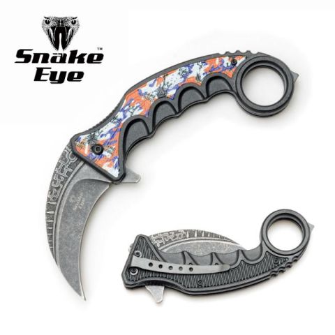 Snake Eye Tactical Spring Assisted Karambit Style Collection Knife - Blue & Orange Game King